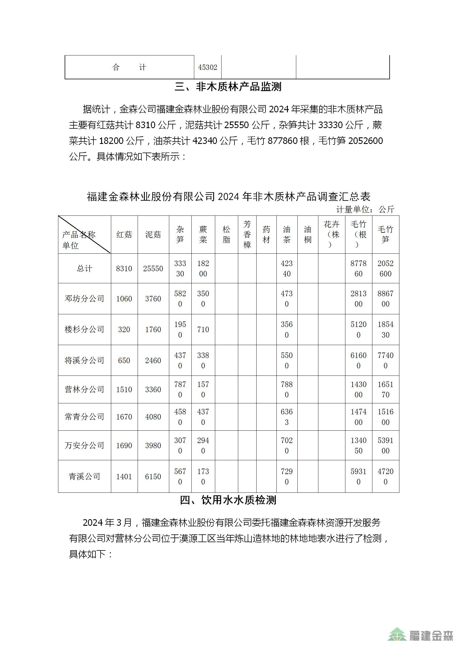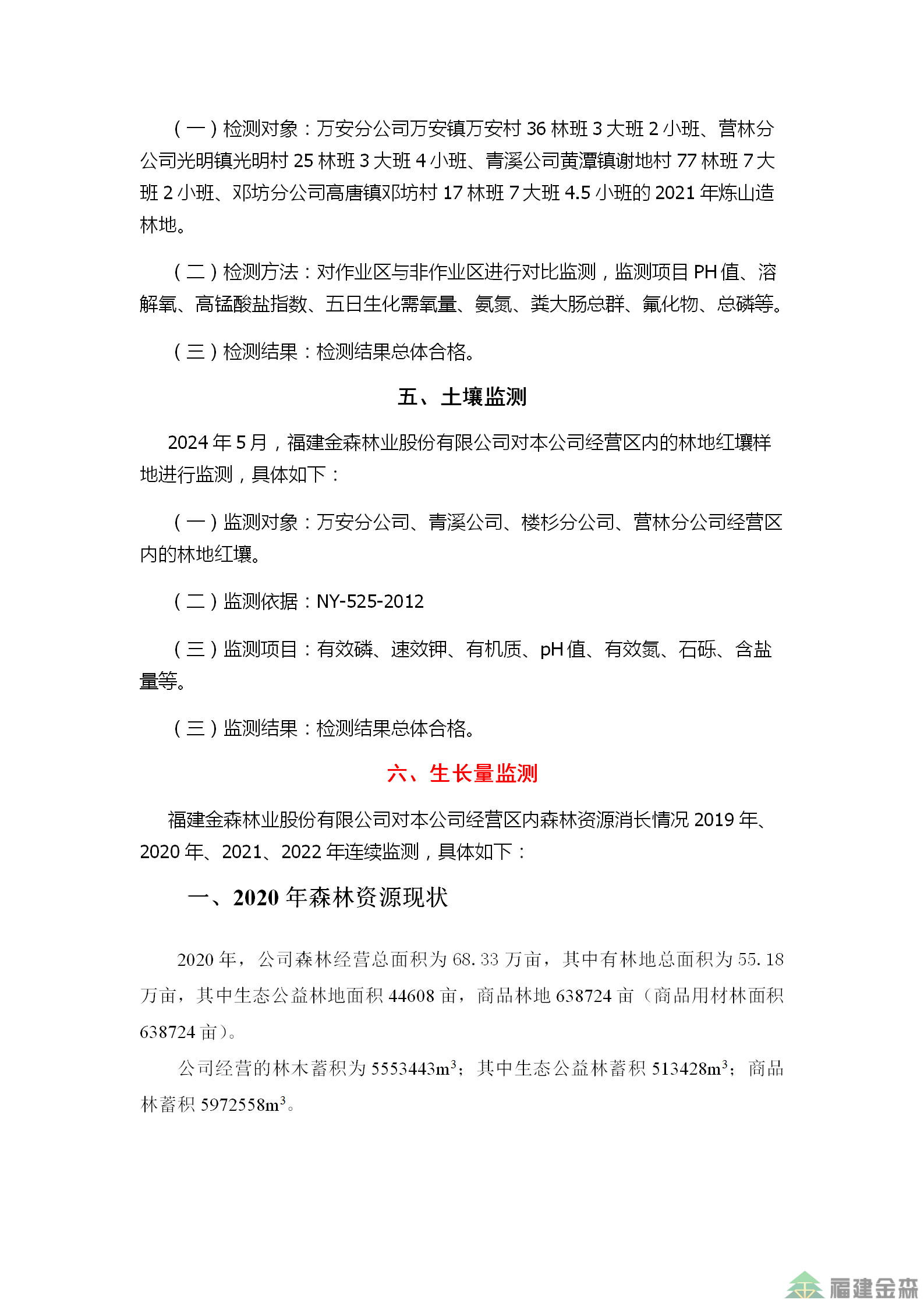 金森公司2024年監(jiān)測結(jié)果