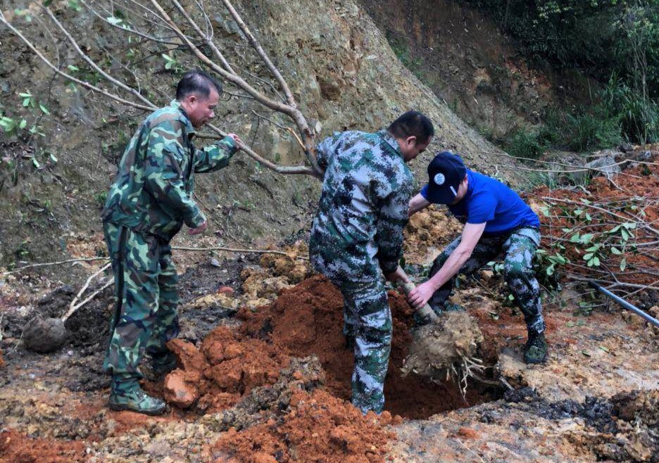 是日有小雨,正是植樹栽新好氣象。公司各高管帶頭勞動,并結合實地對新進員工講解相關林業技術,指導植樹技巧。