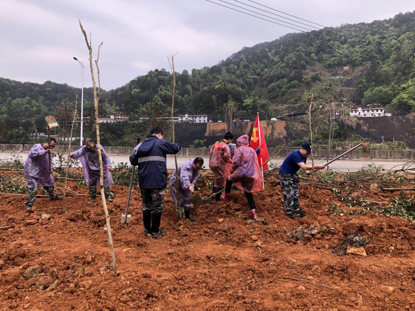 黨員們發揮先鋒帶頭作用,保證自身勞動進度,同時協調人員,維持現場秩序及效率。植樹現場是一派緊張有序的勞動景象,參加植樹的干部職工個個熱情洋溢、干勁十足,有的運樹苗,有的舞鋤頭,你追我趕,比干勁,比進度,各個環節銜接有序,樣樣做得認真到位,個個忙得滿頭大汗。到處都是忙碌的身影。